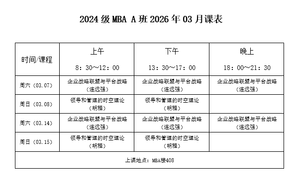 2024级MBA(A)班2026年3月课表