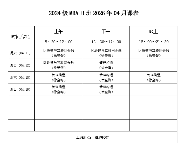 2024级MBA(B)班2026年4月课表