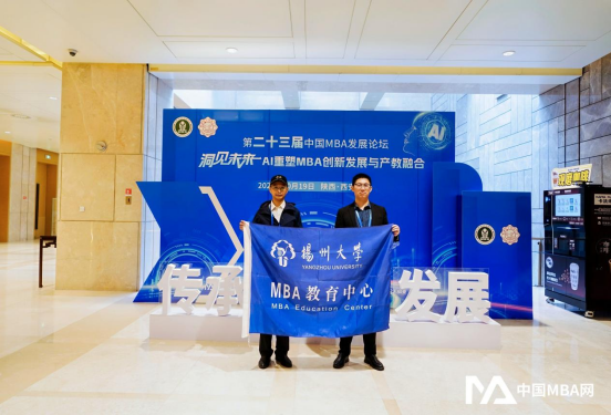 古都秋韵浓,智启新征程。2025年10月19日,第二十三届中国MBA发展论坛在陕西宾馆盛大启幕。扬州大学商学院MBA中心主任焦胜利老师、MBA24级学员代表许大伟、俞倩倩报名参会,与全国百余所高校的专家学者、企业管理精英共赴这场以“洞见未来:AI重塑MBA创新发展与产教融合”为主题的思想盛宴。论坛之上,扬大MBA师生既深度汲取行业前沿智慧,更以亮眼表现斩获殊荣,用实力彰显了学院MBA教育的育人成效与创新活力。