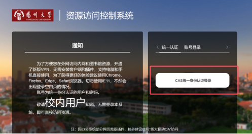 校外用户打不开页面,请在远程登录扬州大学VPN的环境下操作,VPN登录流程如下: