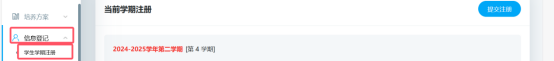 2)个人系统左列点击【信息登记】--【学生学期注册】(图4)